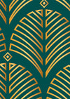 Transformez votre espace avec notre papier peint panoramique sur-mesure Irvin. Ce motif art déco palmette brun doré sur fond vert émeraude ajoute une touche de luxe et de sophistication à votre intérieur. Parfaitement ajustable pour une installation impeccable.